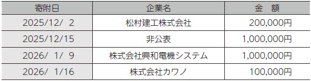 企業の皆様から多くの温かいご支援をいただきましたので、ご報告いたします。
