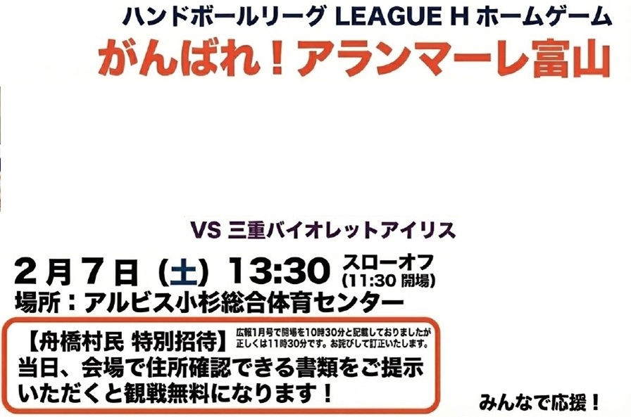 スポーツ ハンドボールリーグ LEAGUE Hホームゲーム 23/26 前の記事 次の記事 発行日 : 2026年02月01日 自治体名 : 富山県舟橋村 広報紙名 : 広報ふなはし 2026年2月号 Tweet シェアする 「結ネット」の導入状況 月イチ園むすび