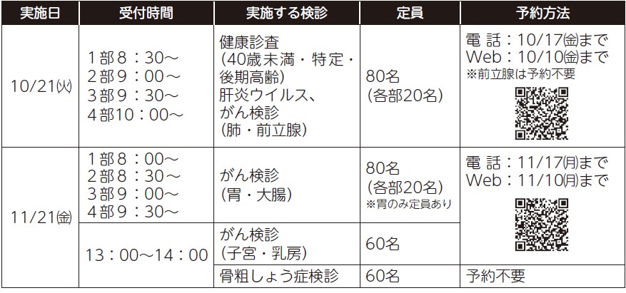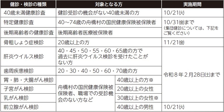 ■秋の集団健診のお知らせ(実施場所:舟橋会館)