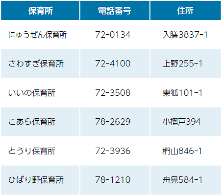 各保育所(上表)