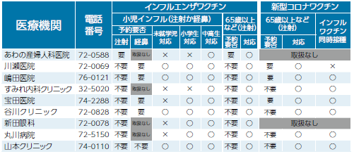 接種場所:下表の医療機関(未就学児のみ、町外協力医療機関でも接種可)