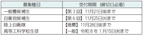 ※応募資格などの詳細は、自衛隊石川地方協力本部ホームページをご覧ください。自衛官候補生の採用試験(受付)は、年間を通して行っています。