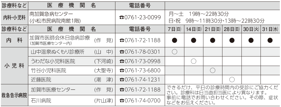 ■加賀市休日急病診療