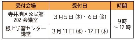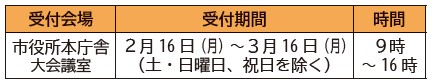 2月16日(月)~3月16日(月)9時~16時(土・日曜日・祝日を除く)