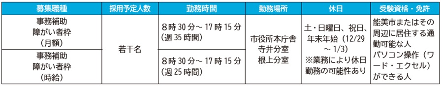 申込方法:市ホームページ「能美市会計年度任用職員募集」にアクセスし、電子申請フォームから申し込みをしてください。