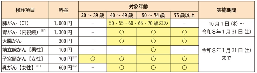 ※2子宮頸がんは20歳~25歳、乳がんは40歳・41歳は無料で受けられます。