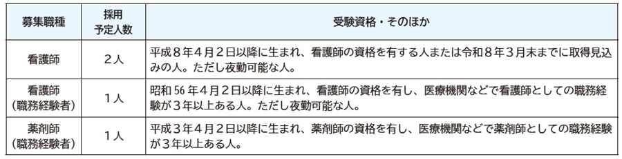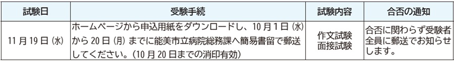 ※そのほか詳細な資格・要件などについては、能美市立病院ホームページをご覧ください。