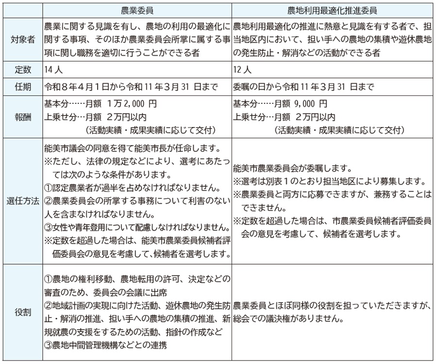 市農業委員会では現農業委員および農地利用最適化推進委員の任期が、令和8年3月31日に満了するため「農業委員会法」などに基づき、次期委員を募集します。