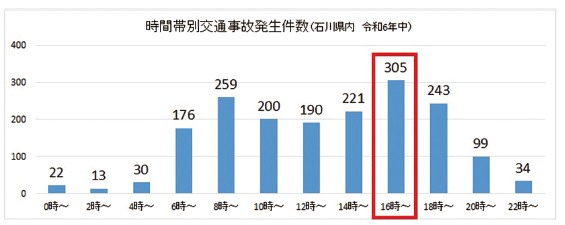 秋は、日没時間が日増しに早まり、薄暮時(薄暗い時間帯)が学生の方やお勤めの方の帰宅時間と重なってくるため、交通事故が発生しやすくなります。