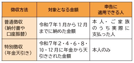 納めていただいた国民健康保険税や後期高齢者医療保険料、介護保険料について、確定申告などで使用するための社会保険料控除証明書を1月中旬にお送りします。ご家族の分もまとめて世帯主に送付します。