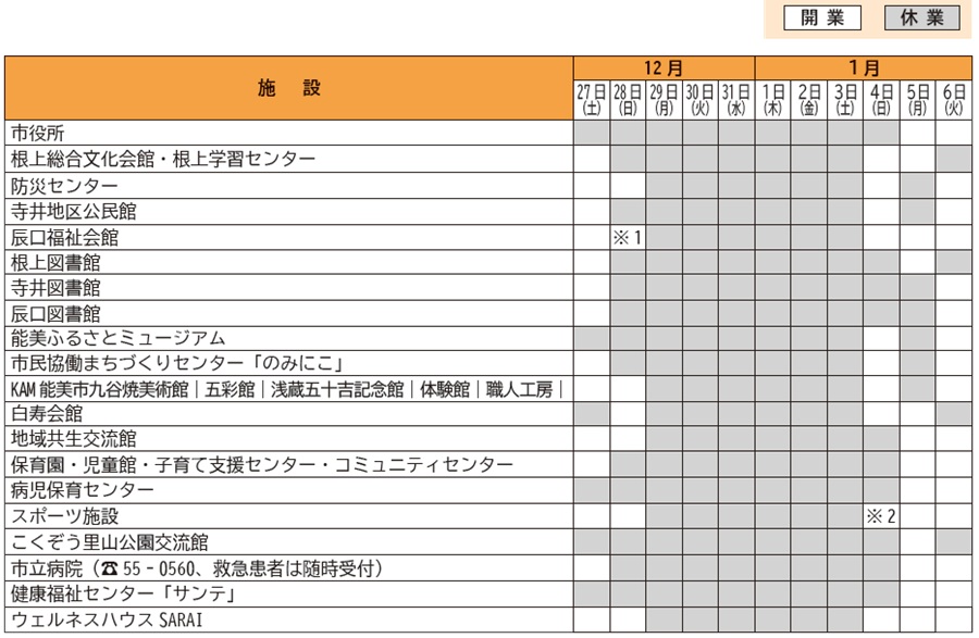 ※温泉交流館里山の湯は年末年始は休まず営業します。年末は大変混雑が予想され、入館制限をする場合があります。