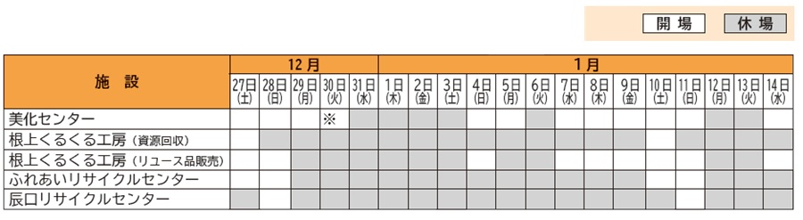 ※12月30日(火)は開場します。ご利用ください。