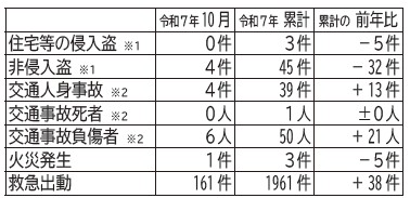 くらし 市内の犯罪・交通事故などの発生件数 11/39 前の記事 次の記事 発行日 : 2025年12月01日 自治体名 : 石川県能美市 広報紙名 : 広報のみ 令和7年12月号 ※1 令和7年11月10日時点 ※2 令和7年11月12日時点 データ提供能美警察署・能美市消防本部 Tweet シェアする 能美市から暮らしに関する情報(お知らせ)(2) 防犯メモ