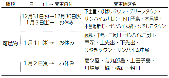 くらし ごみ集めの変更のお知らせ 20/25 前の記事 次の記事 発行日 : 2025年12月01日 自治体名 : 石川県川北町 広報紙名 : 広報かわきた 令和7年12月号 Tweet シェアする くらしのカレンダー 12月 ふれあい健康センター ~ 年末年始の営業日 ~