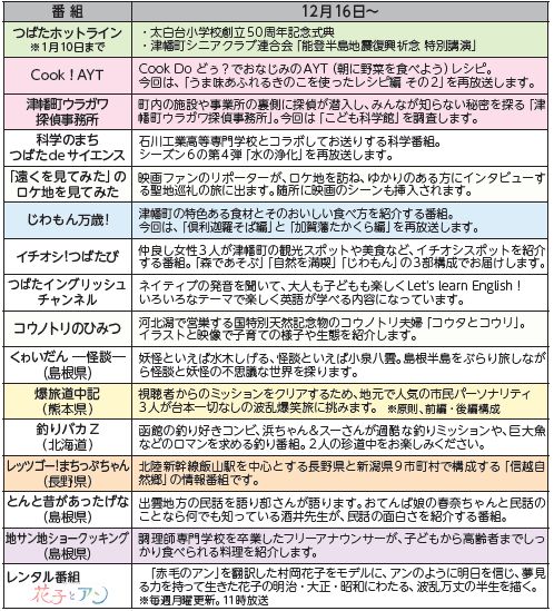 12月更新分のチャンネルつばた放送番組について、アンケートを実施します。