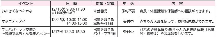 日時:12月16日(火)~19日(金)各日9:30-11:30、13:30-15:30