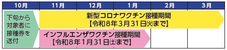 ※対象者には、10月下旬に接種券を送付します。また、11月生まれ以降で65歳になる方は誕生日前に順次送付します。