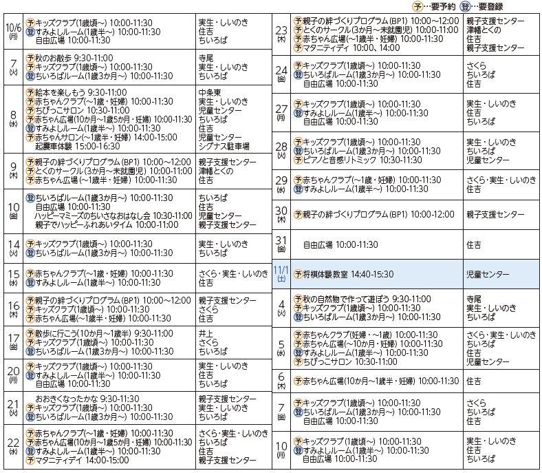 ■10-11月保育園・認定こども園・幼稚園・児童センター・親子支援センター施設開放・イベント情報