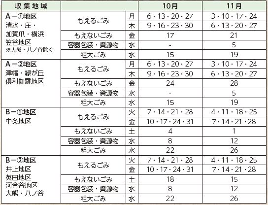 ■ごみ収集ごよみ(10月4日現在)
