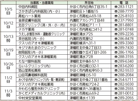 ■休日当番医・当番薬局