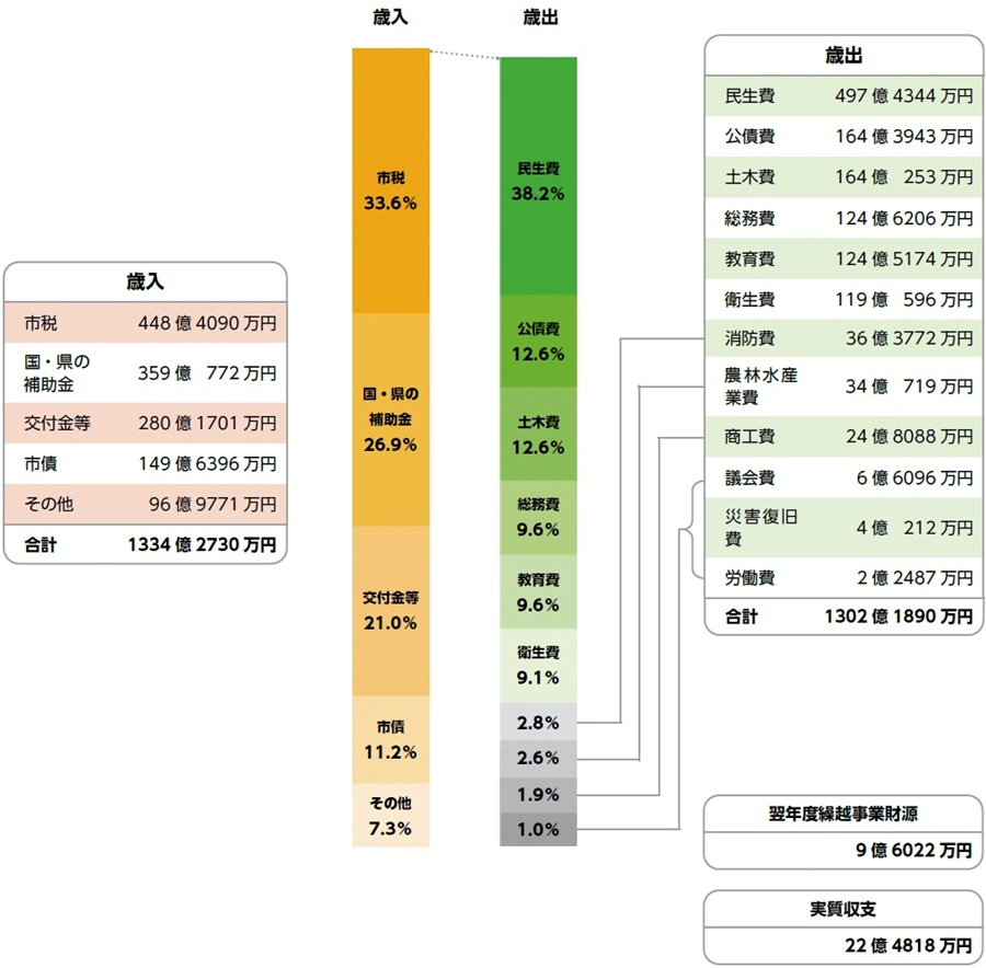 歳入から歳出と翌年度繰越事業財源(年度内に完了せず翌年度に繰り越す事業の財源)を差し引いた実質収支は黒字でした。