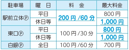 駅前立体駐車場の混雑緩和や駅周辺の交通円滑化を目的に、分散駐車を進めるため駐車料金を変更します。