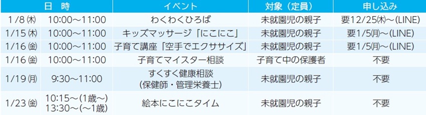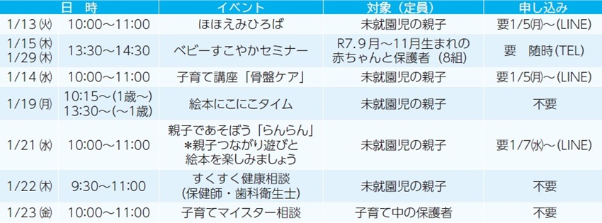 申し込みの必要な行事は、市内在住の方が対象です。(ベビーすこやかセミナーを除く)