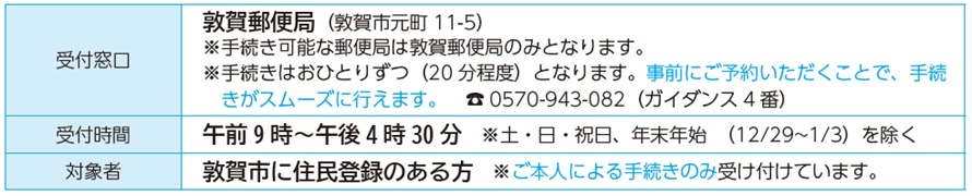 敦賀郵便局でマイナンバーカードの電子証明書の更新や暗証番号の再設定ができます。ぜひご利用ください。