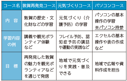 令和8年度から専門コースを廃止し、「敦賀再発見」の内容を一般教養に組み込んだカリキュラムを実施します。そのため、専門コースは令和7年度の1年間のみ受講となります。