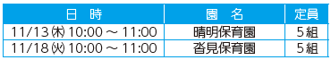 保育園で「出張すくすくひろば」を開催します。対象は、未就園児の親子などです(要申込)。