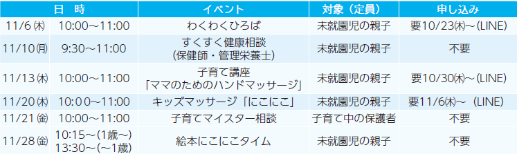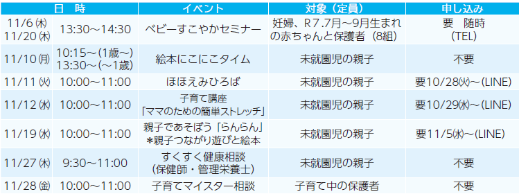 申し込みの必要な行事は、市内在住の方が対象です。(ベビーすこやかセミナーを除く)