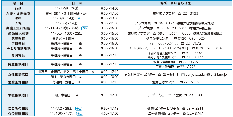 *:相談者が著しく多い場合、受付人数を制限させていただくことがあります。