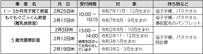 ※令和6年7、8月生まれが対象の1歳6か月児健康診査は、3月6日(金)の実施となります
