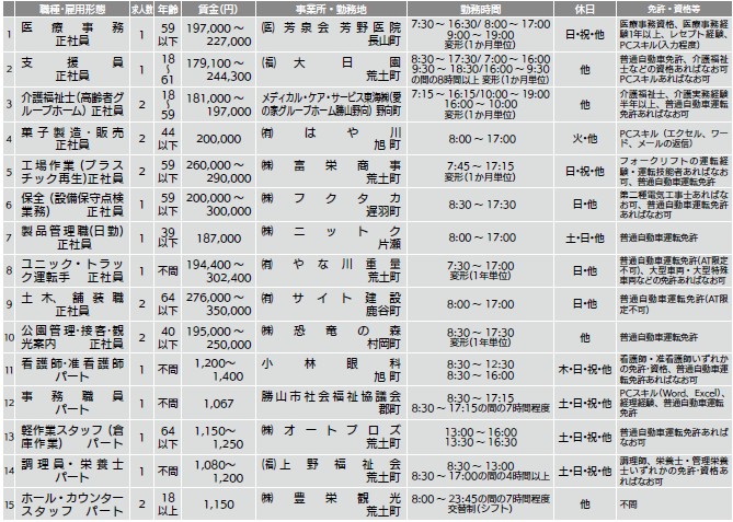 ※まずはマイワークかつやま、または、ハローワーク大野へお越しください。すでに採用済みや求人条件が変更になっている場合があります。