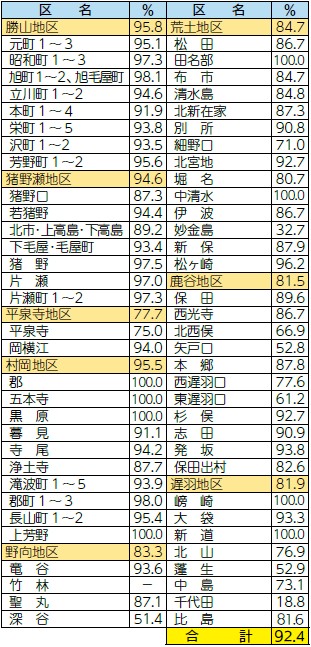 •水洗化率…下水道等に接続済の人口/下水道等に接続できる人口