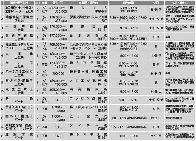 ※まずはマイワークかつやま、または、ハローワーク大野へお越しください。すでに採用済みや求人条件が変更になっている場合があります。