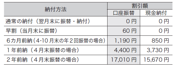 ※口座振替で前納や早割を利用すると、前月分が未納の場合、初回振替時に合わせて引き落とされます。