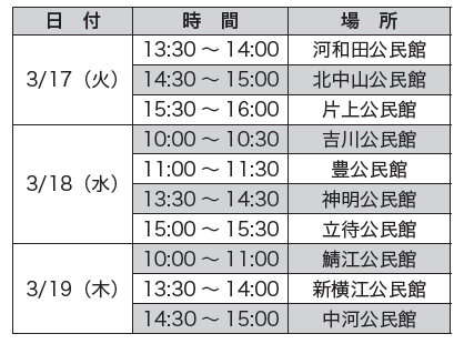 (2)各地区公民館(日時は下の表のとおり)