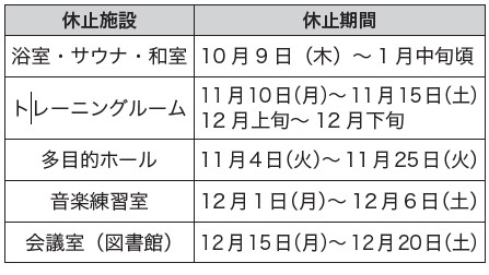 ■市民ホールつつじ一部施設の利用休止のお知らせ