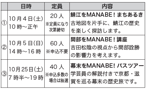 幕末の鯖江藩主・間部詮勝の功績を紹介する3つの学びイベントを開催します。
