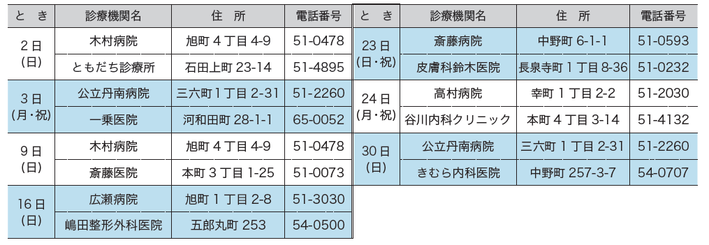 市ホームページの休日当番医表は本紙の二次元コード参照