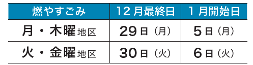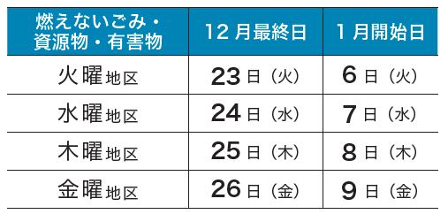 ・年末年始は交通事情やごみの排出状況などにより、収集時間が通常と異なる場合があります。ご了承ください。