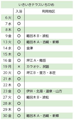 芦原地区の入浴送迎ワゴンは、お風呂の営業日に次の通り運行します。