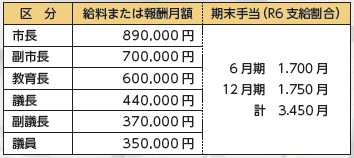 (6)特別職の給料、報酬などの状況(令和7年4月1日現在)