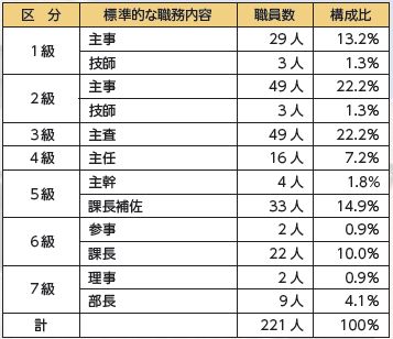 (7)一般行政職の級別職員数の状況(令和7年4月1日現在)
