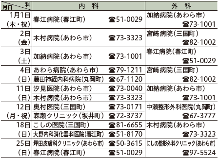くらし 休日診療 20/27 前の記事 次の記事 発行日 : 2025年12月10日 自治体名 : 福井県坂井市 広報紙名 : 広報さかい 2025年12月号 受診前に、各医療機関にお問い合わせください。 診療時間:9:00~17:00 問合せ:嶺北消防本部 【電話】51-0119 ◆小児科 福井県こども急患センター 【電話】26-8800 診療時間:9:00~23:00 Tweet シェアする 1月 相談日 年末年始のご案内
