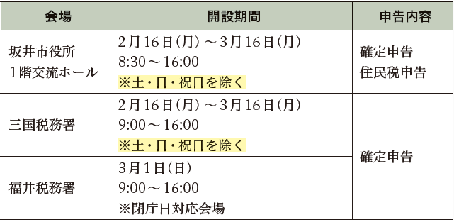 ・確定申告コールセンター【電話】81-3211(三国税務署から自動音声案内で「0」を選択)