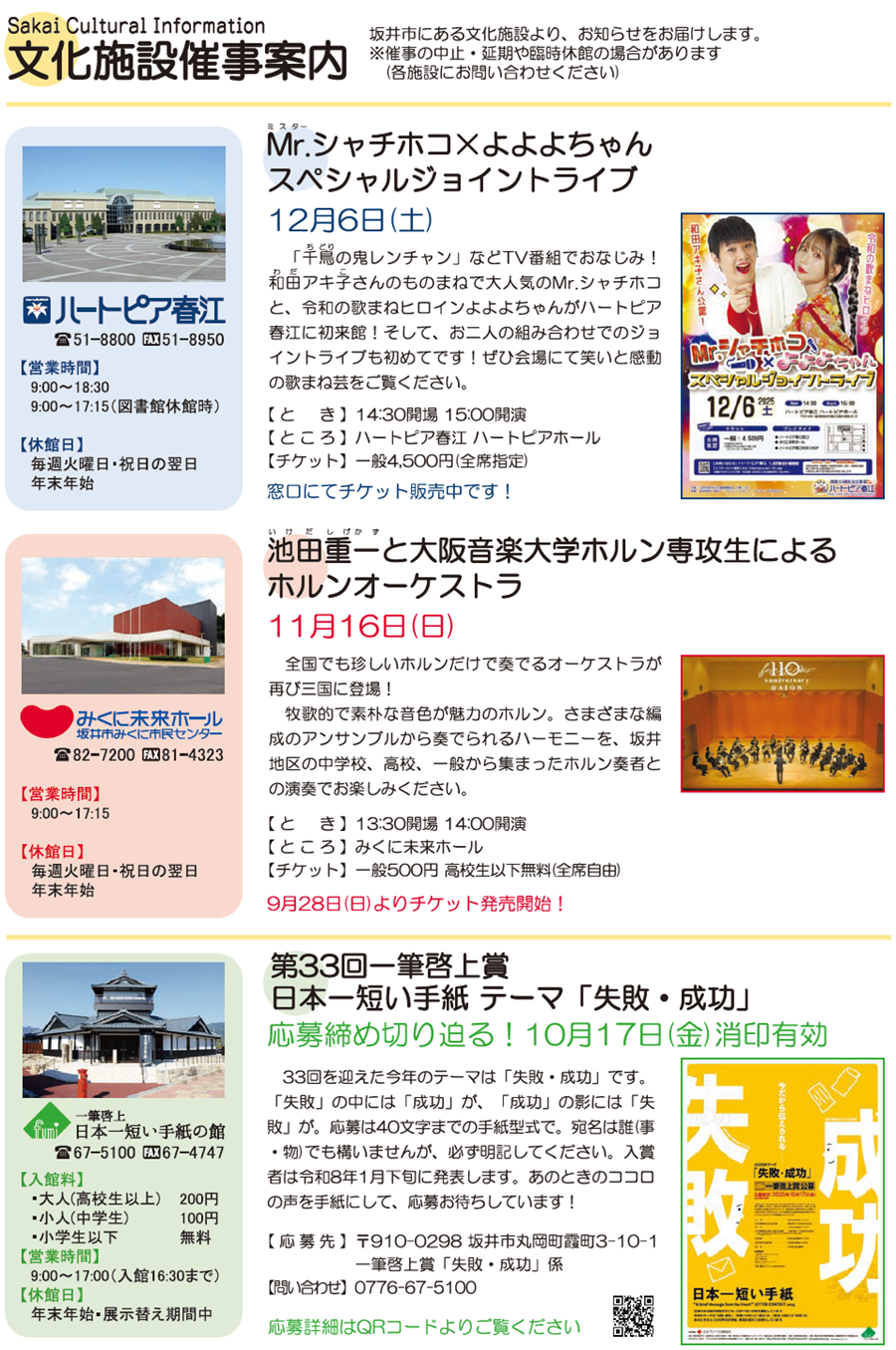 イベント 文化施設催事案内 Sakai Cultural Information 2/20 前の記事 次の記事 発行日 : 2025年09月10日 自治体名 : 福井県坂井市 広報紙名 : 広報さかい 2025年9月号 Tweet シェアする FOCUS(フォーカス) まちの話題をお届けします。 ホットライン(1)