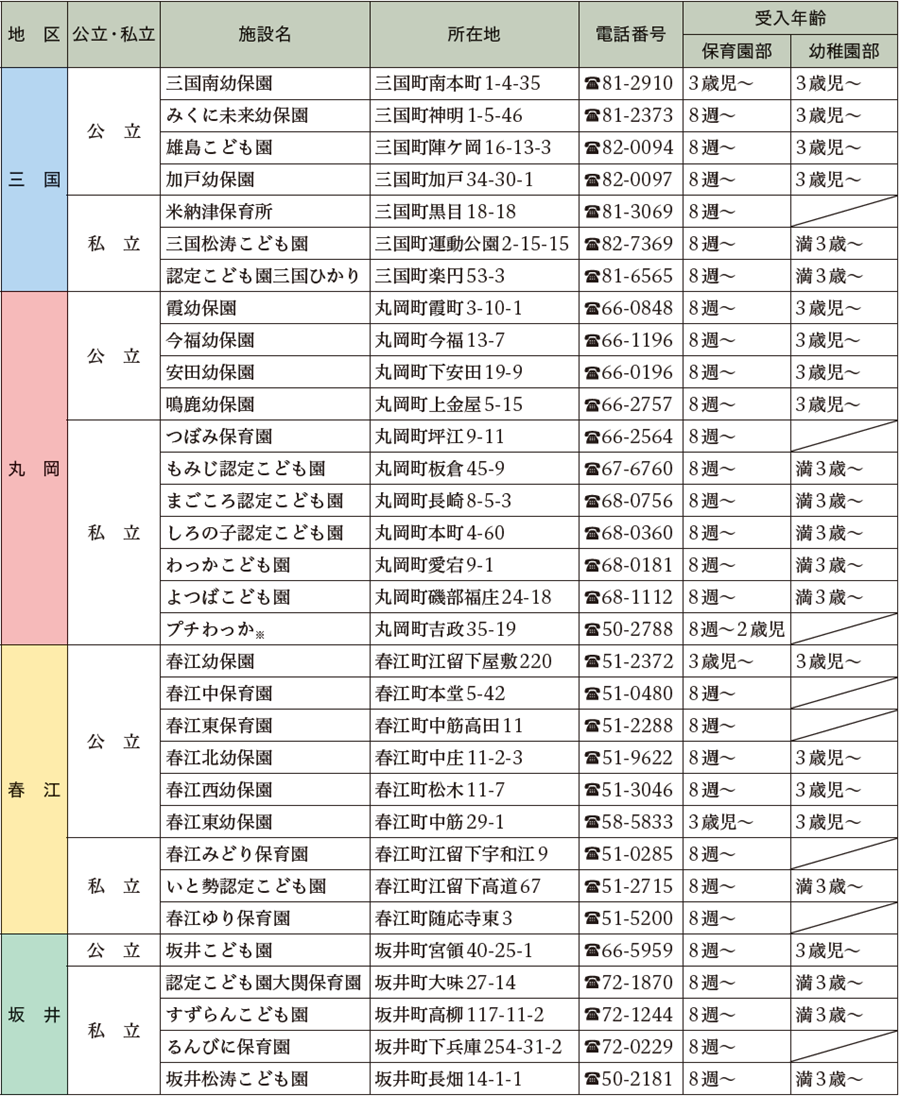 ▽保育園・幼保園・認定こども園・小規模保育園(令和8年4月予定)