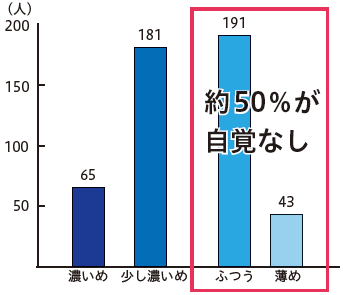 ▽塩分チェックの結果「濃い、少し濃い」だった人の普段の味付けの自覚